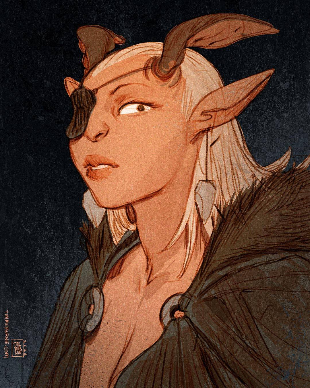 What's great about this method is that the construction lines and sketchy marks tend to fade into the background visually. I can leave some of the construction visible and it doesn't compete with the final marks - they just become part of the overall texture of the piece. Demo:In my second video, I demonstrate this technique while creating a character portrait in Procreate: The video shows the entire process from a rough thumbnail through to the finished illustration. Here's a version of the final image (I added some noise and paper texture in Photoshop after): The Brush?I got a lot of questions in the comments about the brush I use in Procreate for this technique, so here is a link to it via Dropbox: Download my (really basic) Pencil for Procreate (Psst, it's the original default chalk brush from Photoshop... the same one I have been using for 20 years.) I have been trying to do more personal art recently (and actually posting it online). It's been good to make some art without having to record the process. This has also been a good opportunity to explore a new style of art ritual for me where I chip away at a personal piece throughout the week. Cheers! |